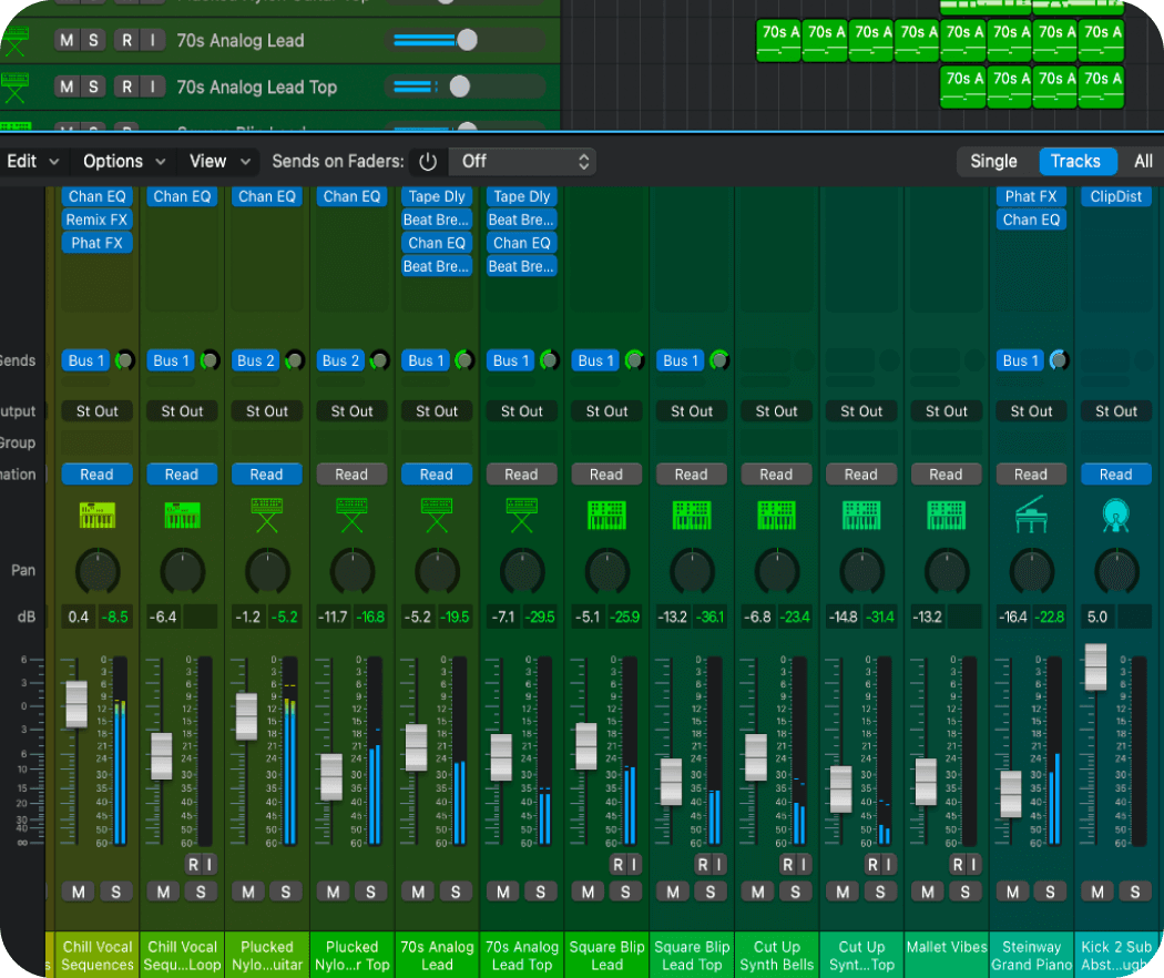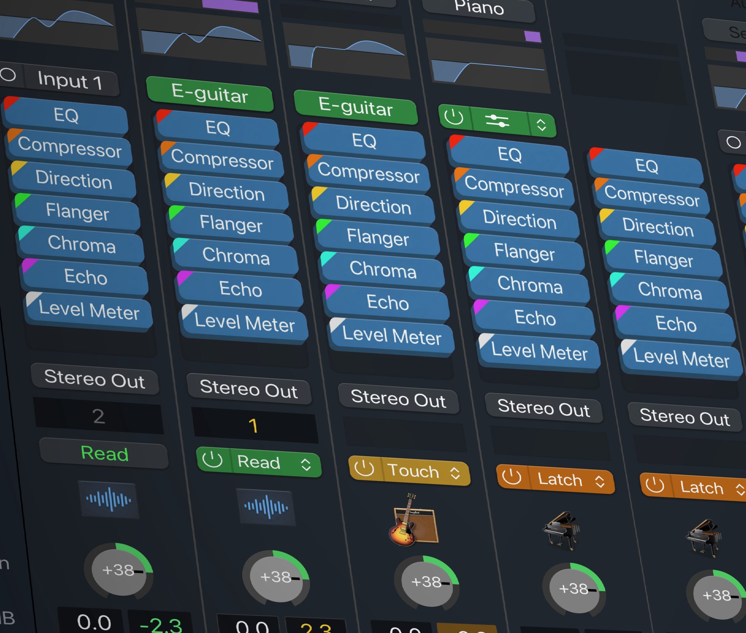Colorize the entire channel strips to quickly identify tracks and groups without reading names.